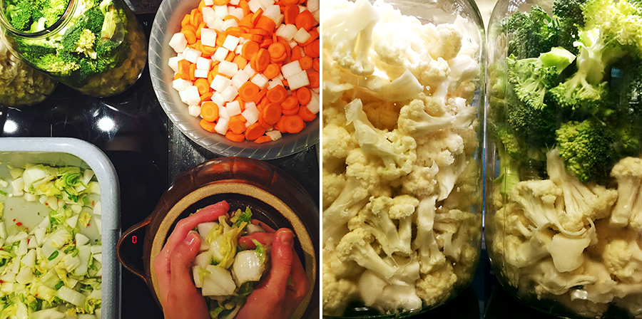 3. Fermentované potraviny. Kysané zelí se u nás dělá od nepaměti, posledních pár let děláme i pickles (nakládanou kvašenou zeleninu). V prosinci minulého roku jsme navíc vyrobili naše první domácí kimči a dostala jsem kombuchu, která byla hitem naposledy asi před deseti lety. Dnes ji vyrábí zahraniční firmy ve velkém, stáčí ji do malých pet lahví a za pozoruhodné peníze ji prodávají jako nápoj mládí. Fermentovat se bude skutečně všechno a za mě je to jedno velké ANO! Někteří lidé totiž vnímají zdravá probiotika jen jako kefír nebo jogurt z reklamy, přitom tradiční miso pasta, rejuvelac, křupavý kvašený květák nebo domácí fermentovaný sýr z ořechů jsou dokonalými potravinami pro šťastný žaludek a spokojená střeva. Připravte se, že na tomhle blogu to